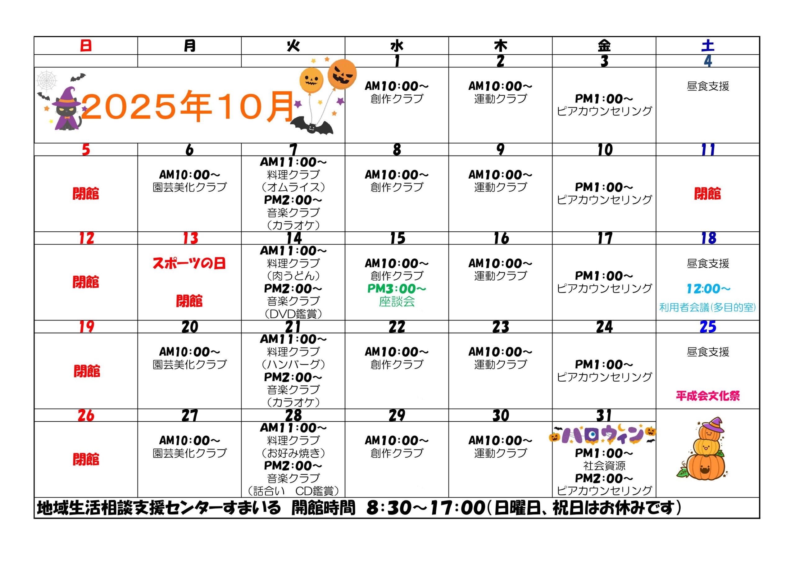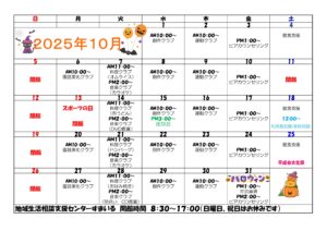 地域生活相談支援センターすまいるの10月の月間プログラムが発行されました!