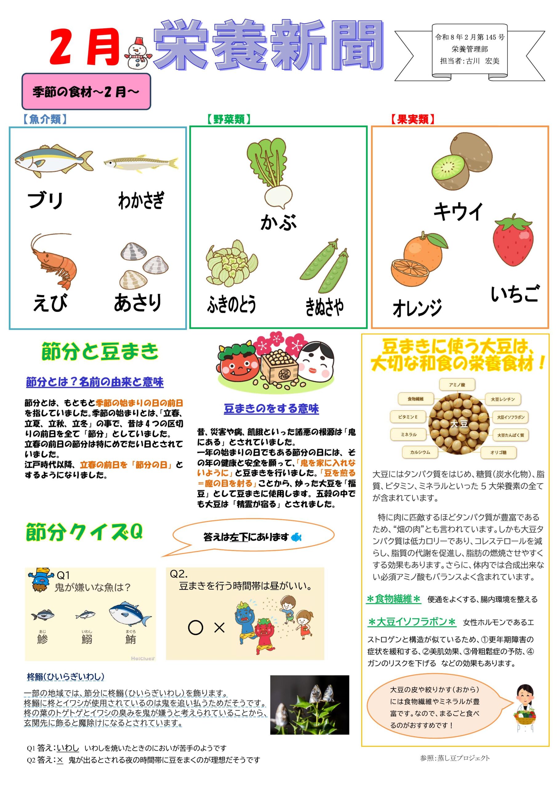 当院栄養管理部より令和8年2月第145号の栄養新聞が発行されました。