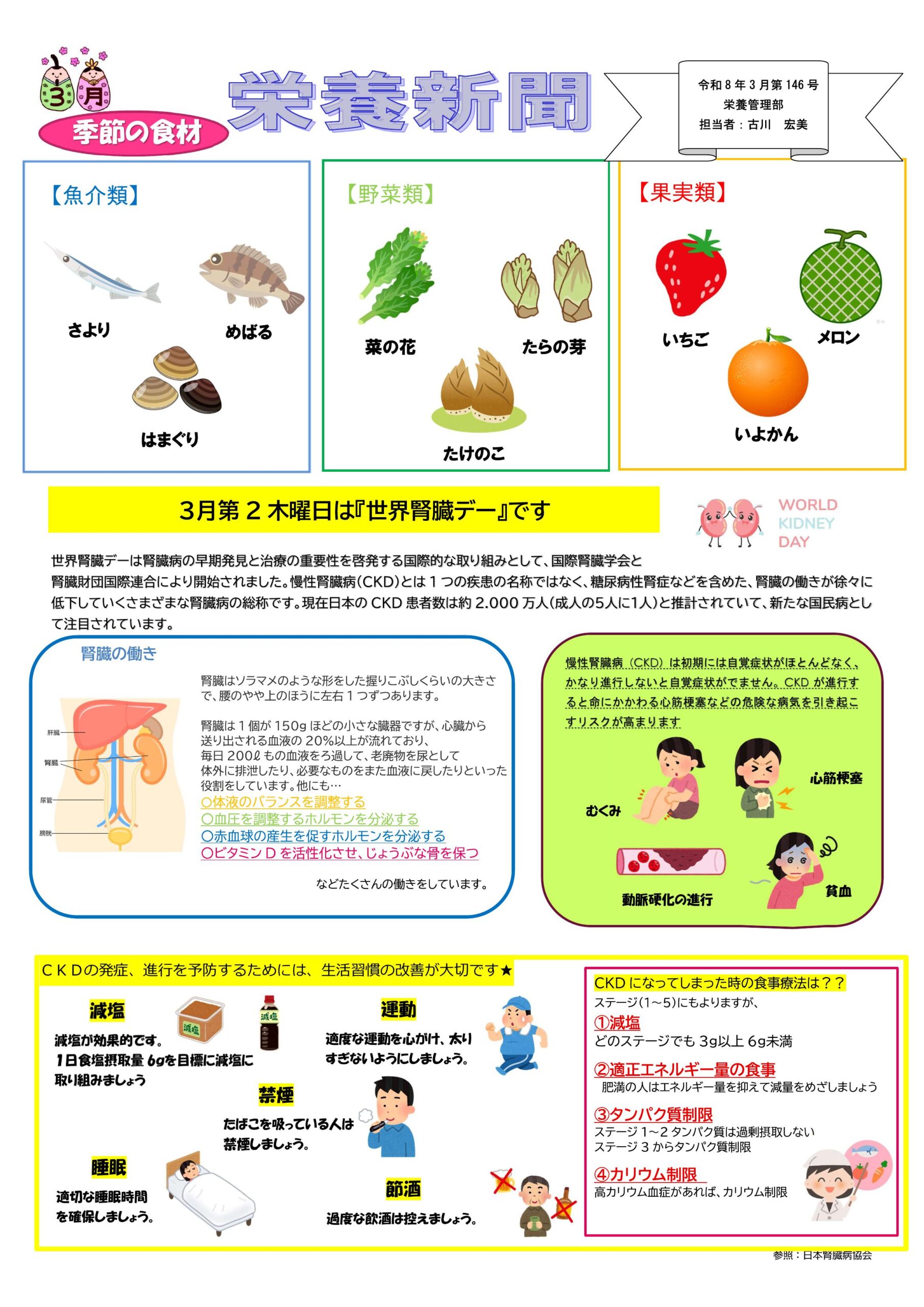 当院栄養管理部より令和8年3月第146号の栄養新聞が発行されました。