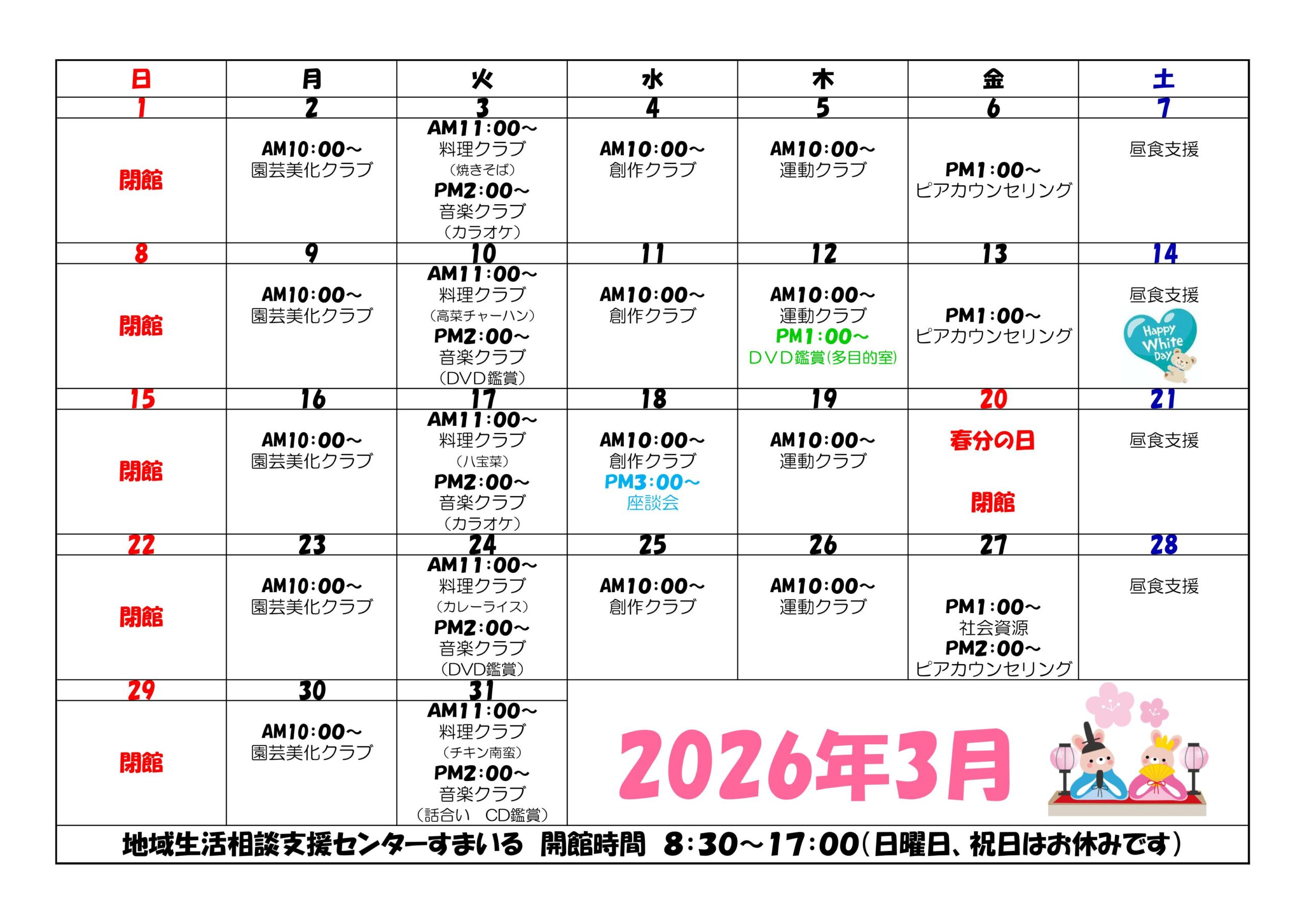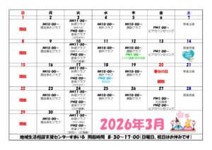 地域生活相談支援センターすまいるの3月の月間プログラムが発行されました!