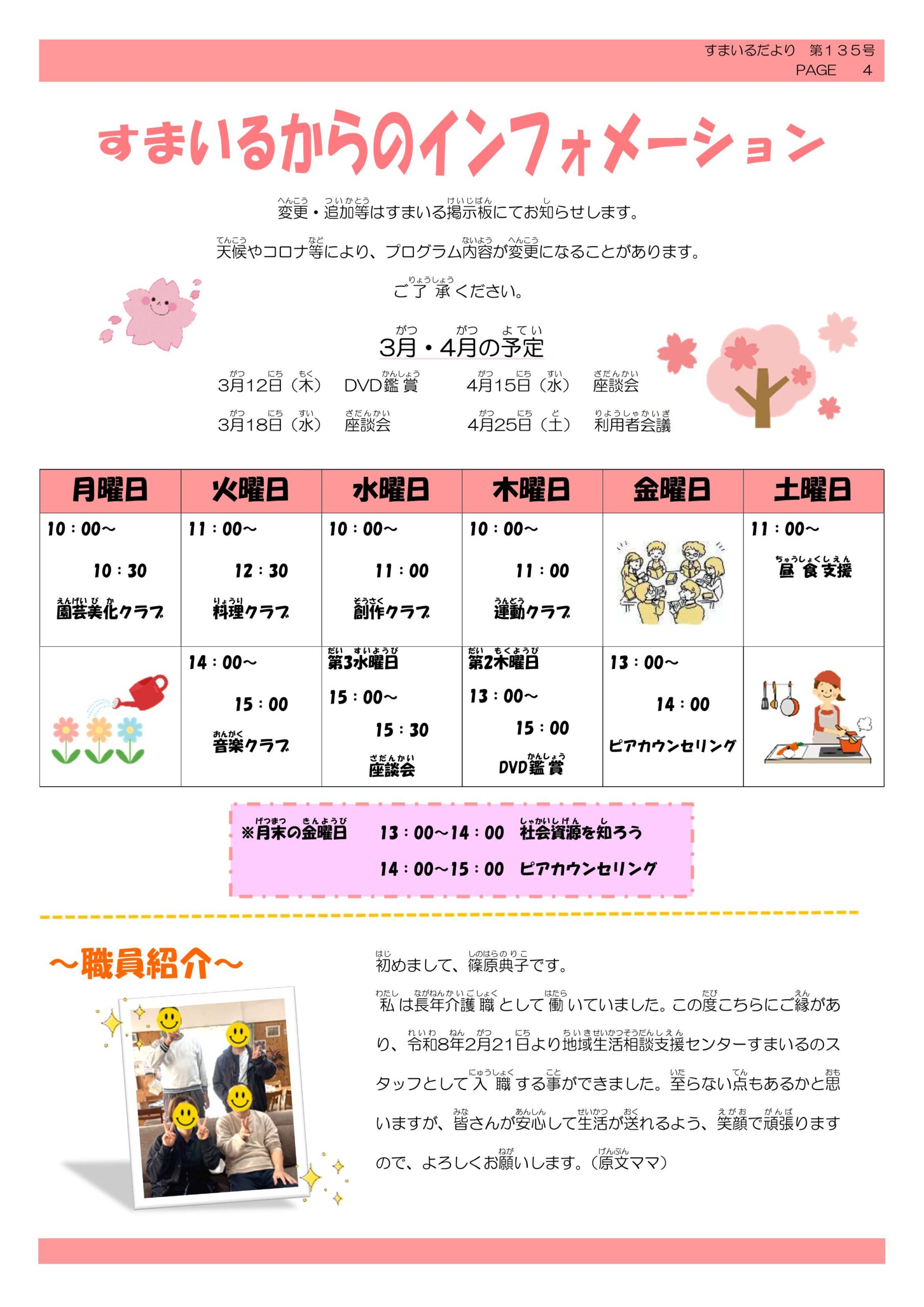 また各種のお知らせと3月・4月の予定を掲載していますのでぜひお読みください!
